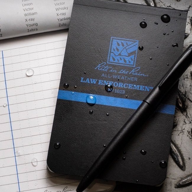 Rite in the Rain Thin Blue Line All-Weather Notizbuch 3,25 x 5,25 - Professionelles Notizbuch mit flexiblem Cover, nummerierten Seiten und Beweismitteln. Ideal für gültige Aussagen und Beweissammlung.