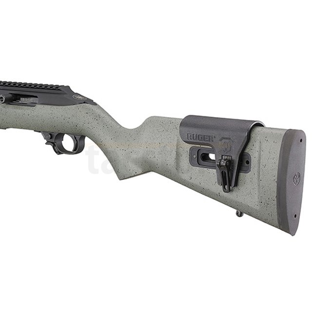 Das Ruger 10/22 Competition Linkshänder ist ein leistungsstarkes Selbstladegewehr im Kaliber .22 LR, konzipiert für den Wettkampfschützen. Mit einem gesprenkelten Schwarz/Grau-Laminatschaft mit verstellbarer Wangenauflage und einem kalt gehämmerten, gefluteten Bull-Lauf aus legiertem Stahl bietet es außergewöhnliche Präzision und Zuverlässigkeit.