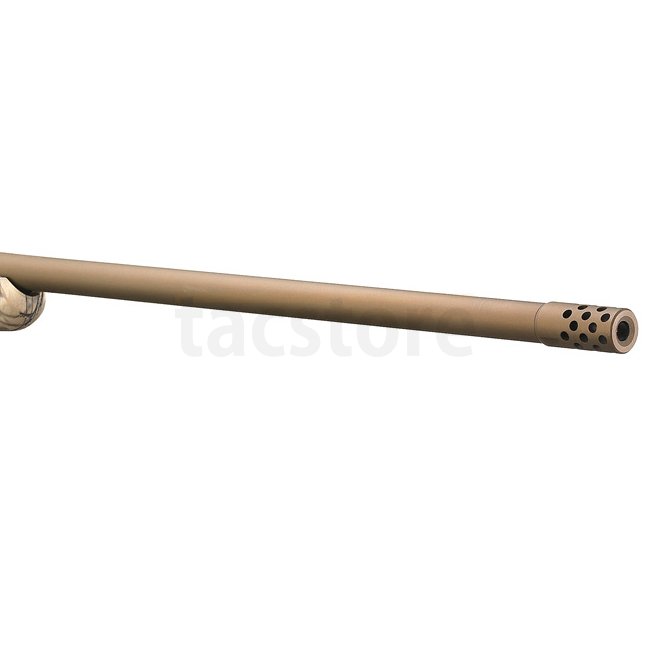 Der kalt gehämmerte Lauf verfügt über ein werkseitig montiertes Mündungsbremse und ein Gewinde für Zubehör. Das Power Bedding™ System und der dreiwarzenverriegelte Kammerstängel mit 70° Öffnungswinkel gewährleisten weiches Repetieren und präzise Schussabgabe. Eine Picatinny-Schiene ist vormontiert.
