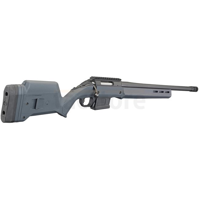 Ausgestattet mit einem grauen Magpul Hunter American Short-Action-Schaft mit vollständig einstellbarer Schaftlänge (13 cm - 15 cm) und Wangenauflage, der die Ergonomie für eine individuelle Passform verbessert.