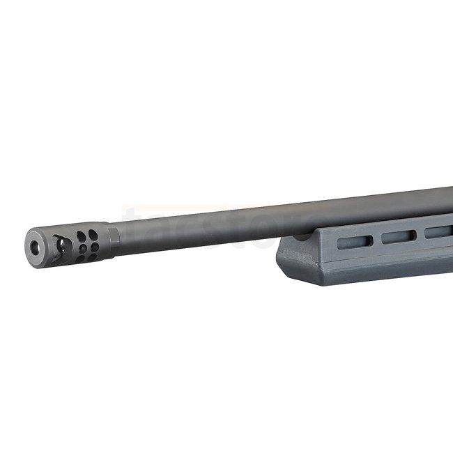 Der 50.8 cm schwere Lauf (.850" an der Mündung) verfügt über einen Ruger Precision® Rifle Hybrid Mündungsaufsatz, der den Rückstoß effektiv reduziert und gleichzeitig Lärm und seitlichen Druck für den Schützen minimiert.