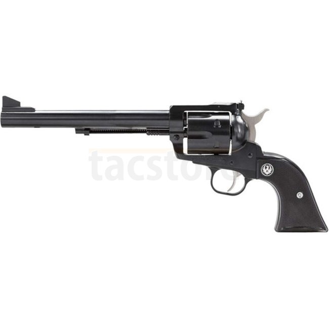 Der Ruger New Model Blackhawk .45 Colt Modell 0455 vereint klassisches Western-Design mit moderner Schießleistung. Die schwarz geriffelten Hartgummigriffe bieten hervorragende Kontrolle und natürliche Zielerfassung.