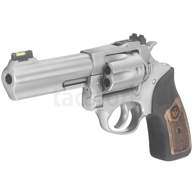 Der gummierte Griff mit Holzintarsie verhindert Metallkontakt am Rückenstück und sorgt für hohen Komfort und Rückstoßkontrolle. Der Revolver lässt sich ohne Spezialwerkzeug einfach warten.