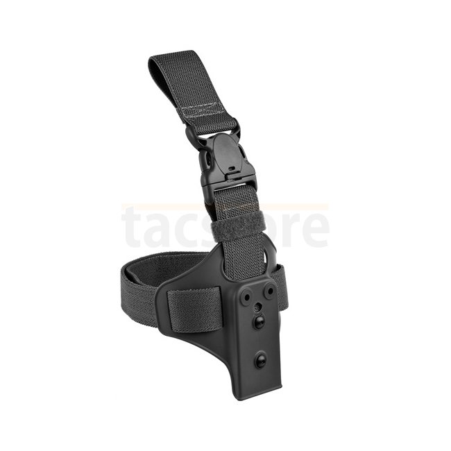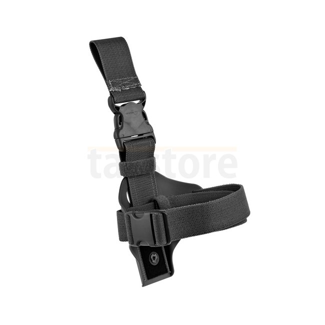 Leichtes, schwarzes Beingehäuse mit verstellbarem Riemen und abnehmbarer Schnalle. Kompatibel mit Safariland Holstern/Zubehör.