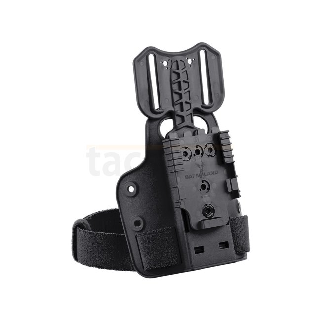 Safariland kleine taktische Platte & DFA QLS Empfänger in Schwarz. Einzelgurt-Beinschutz mit QLS 22 Empfängerplatte. Ideal zum Tragen eines Rigs unterhalb der Hüfte, ohne das Gewicht weiter nach unten am Bein zu verlagern. Passt für Gürtelbreiten bis zu 5