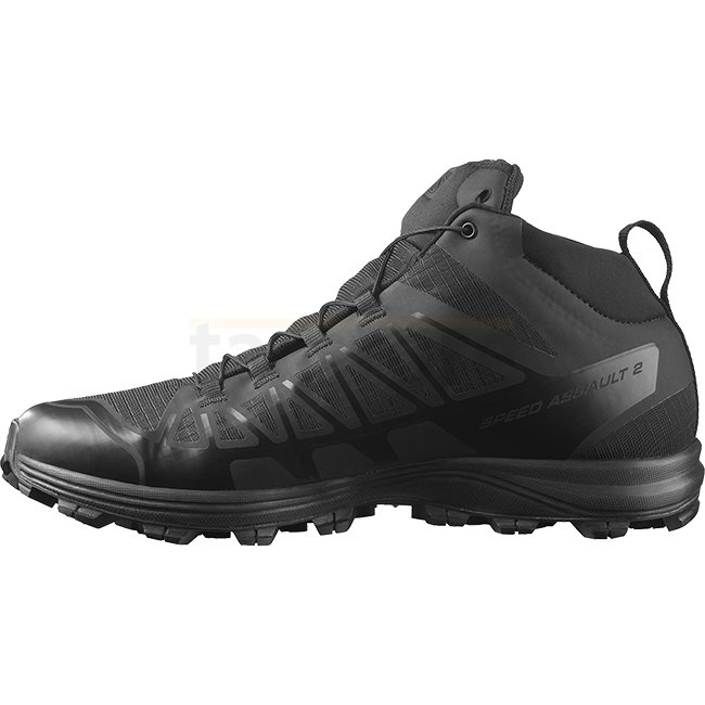 Der Salomon Speed Assault 2 in schwarzer Farbe und UK-Größe 10 ist für Geschwindigkeit und Agilität bei Outdoor-Einsätzen konzipiert. Mit einem eleganten Design und robuster Verarbeitung bieten diese Schuhe hervorragende Leistung in anspruchsvollem Terrai
