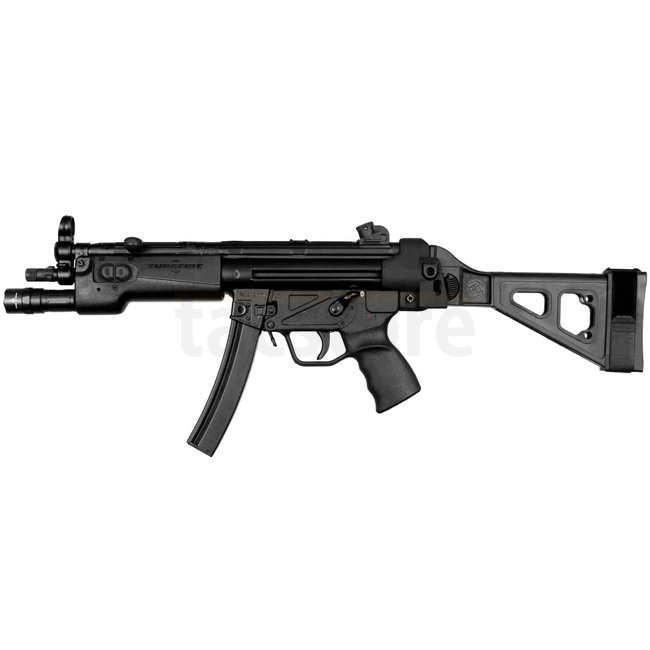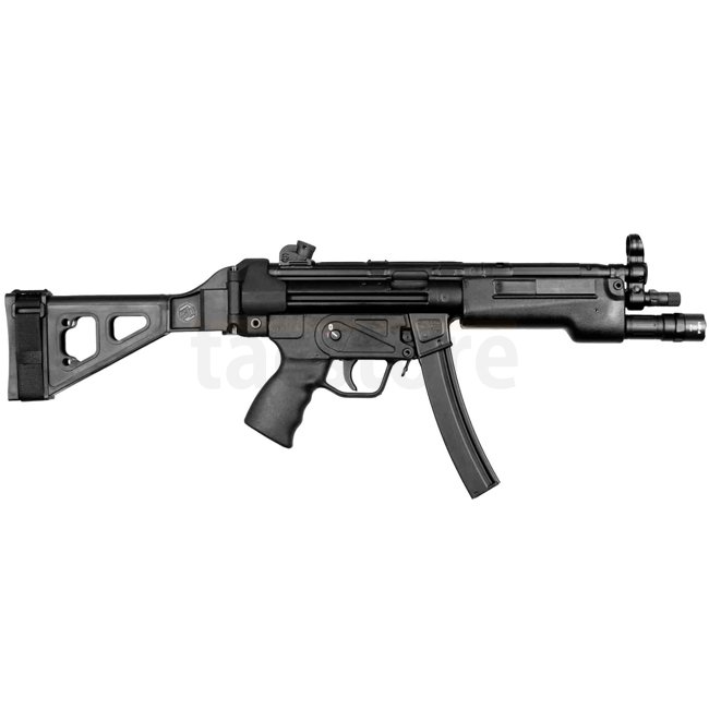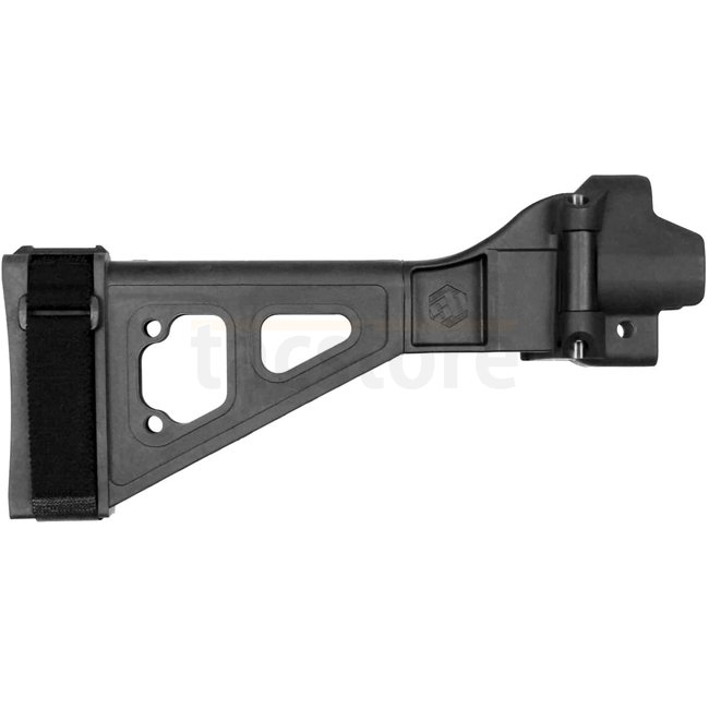 Die SBT5 verbessert MP5 / MP5K reverse stretch Klone mit einem seitlich klappbaren Polymer-Endstück und integriertem Design. Kompaktes Profil bei verbesserter Kontrolle. Für 9 mm Plattformen mit einem hinteren Push-Pin.