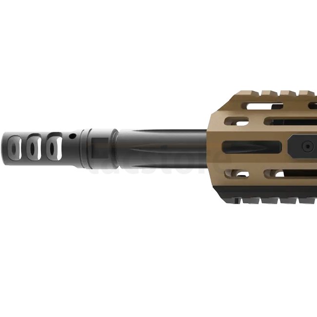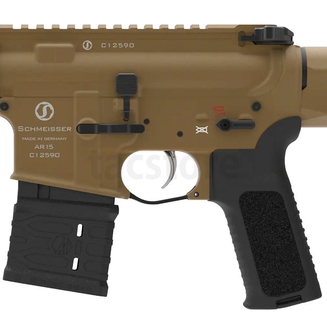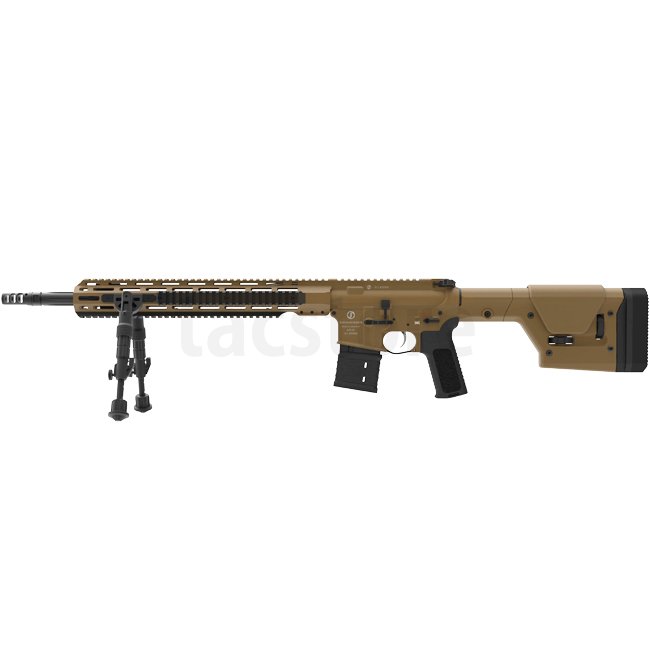 Dieses Gewehr verfügt über einen kannelierten Heavy Match Lauf, einen freischwingenden M-LOK Handschutz mit Helicoil-Einsätzen und ein vollständig beidseitiges Design, einschließlich Ladehebel, Sicherungshebel, Verschlussfanghebel und Magazinauslöser. Der Schmeisser Ladehebel verfügt über Gasöffnungen für die Verwendung mit Schalldämpfern und bietet erweiterte Flügel für eine einfache Handhabung. Zusätzlich ist das Gewehr mit einer 45°/90° Sicherung ausgestattet, die leicht zwischen diesen beiden Einstellungen gewechselt werden kann.