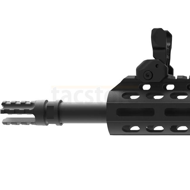 Die vollständig beidseitigen Bedienelemente, einschließlich des Ladehebels mit Gasöffnungen und erweiterten Flügeln, 45°/90° Sicherungshebels und beidseitigem Verschlussfang, ermöglichen eine unvergleichliche Benutzerfreundlichkeit für Rechts- und Linkshänder. Der M-LOK-Handschutz mit Helicoil-Einsätzen bietet eine robuste Plattform für Zubehör, während das Schmeisser Multi Wire Silent Buffer System einen reibungslosen und konsistenten Betrieb gewährleistet.