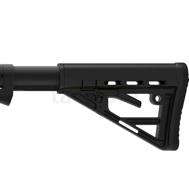 Die vollständig beidseitigen Bedienelemente, einschließlich des 45°/90° Sicherungshebels, verbessern die Benutzerfreundlichkeit für Rechts- und Linkshänder. Der Slim Line M-LOK Handschutz ermöglicht die Anbringung verschiedener Zubehörteile, während der Schubschaft Anpassungsfähigkeit und Komfort während des Gebrauchs bietet.