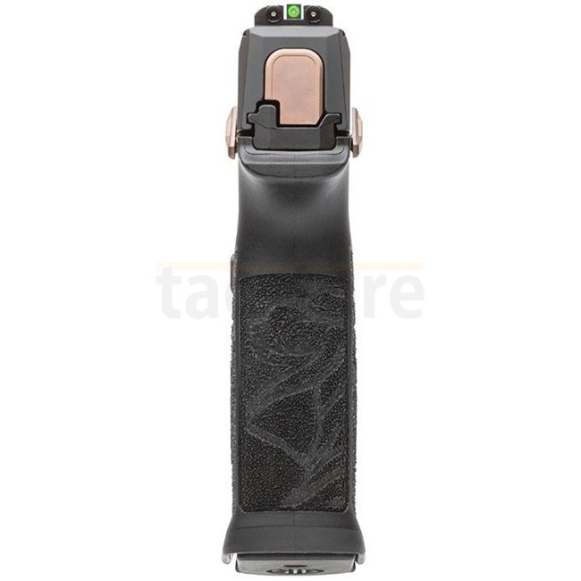 - Material: Edelstahl-Schlitten mit Nitron-Beschichtung; Polymer-Griffstück mit ROSE-Lasergravur