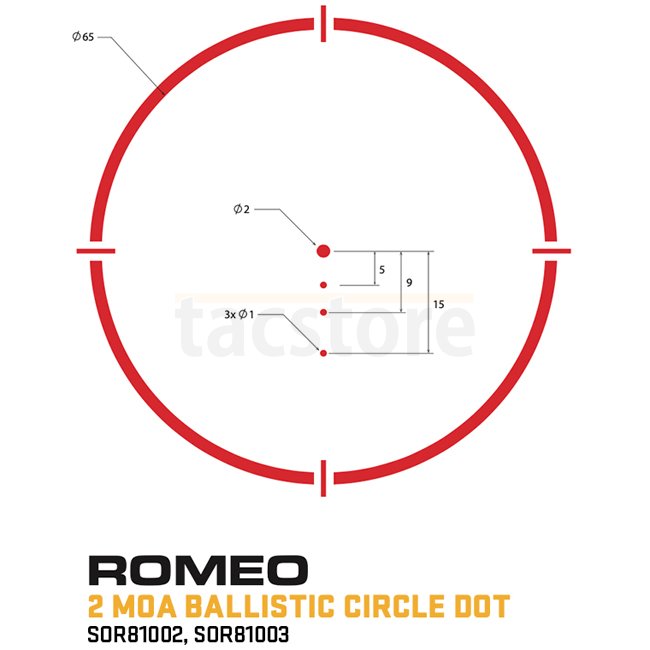 Absehen: 2 MOA Red Dot, 65 MOA Circle