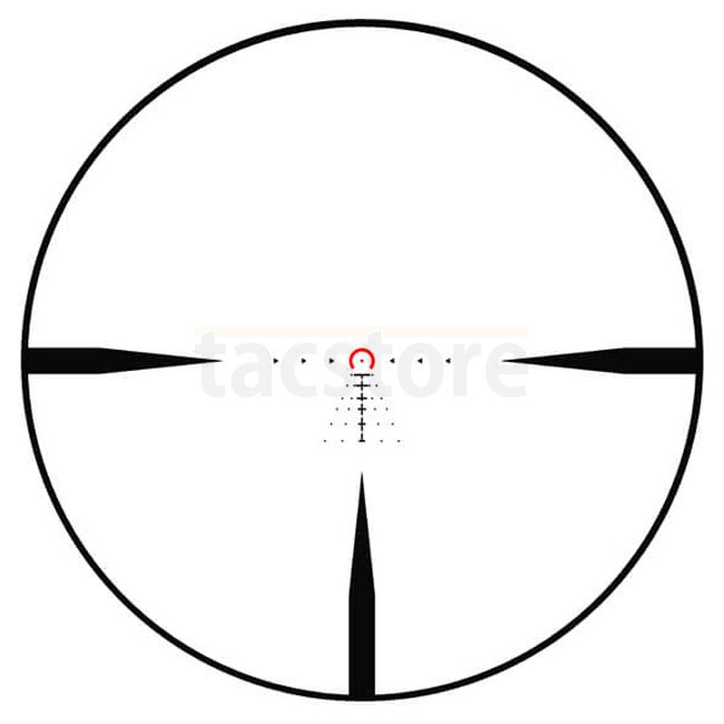 Es enthält eine vormontierte, werkseitig gelevelte ALPHA‑MSR Cantilever‑Montage. Die Absehenbeleuchtung besitzt 6 Helligkeitsstufen mit Zwischen‑Off‑Positionen. Robuste Metallschrauben sowie ein abnehmbarer Schnellverstellhebel am Vergrößerungsring sind ebenfalls enthalten. Das Gehäuse ist wasserdicht, stoß‑ und beschlagfest.