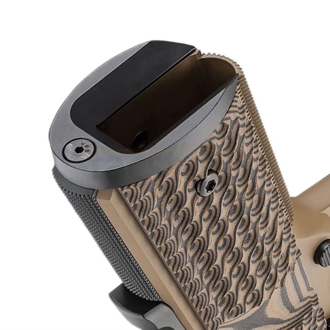 Zweiteiliges, erweitertes Magwell, 20 LPI Checkering und VZ Hydra G-10 Griffe sorgen für schnelle, reproduzierbare Nachladungen und sicheren Griff.