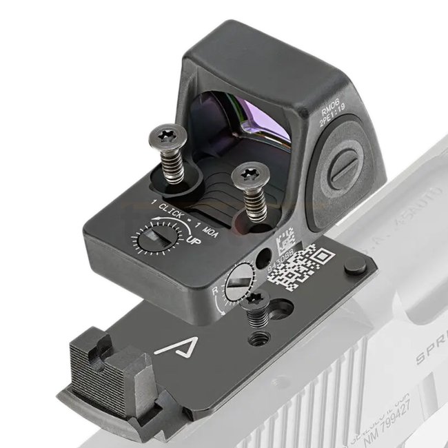 AOS-Platten ermöglichen die direkte Montage gängiger Micro-Red-Dots und behalten nahezu Co-Witness mit den Eisenvisieren.