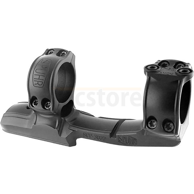 Die Spuhr SCP-3022 ist eine Zielfernrohrhalterung der Hunting-Serie, die für die Verwendung auf Picatinny-Schienen entwickelt wurde. Sie verfügt über einen klassischen Ring und einen Schnittstellenring, der gedreht werden kann, um Zubehör entweder in der 12-Uhr- oder 3-Uhr-Position zu platzieren. Diese Cantilever-Halterung ermöglicht es, das Zielfernrohr 70 mm (2,76 Zoll) weiter vorne zu positionieren als bei einer Nicht-Cantilever-Halterung.