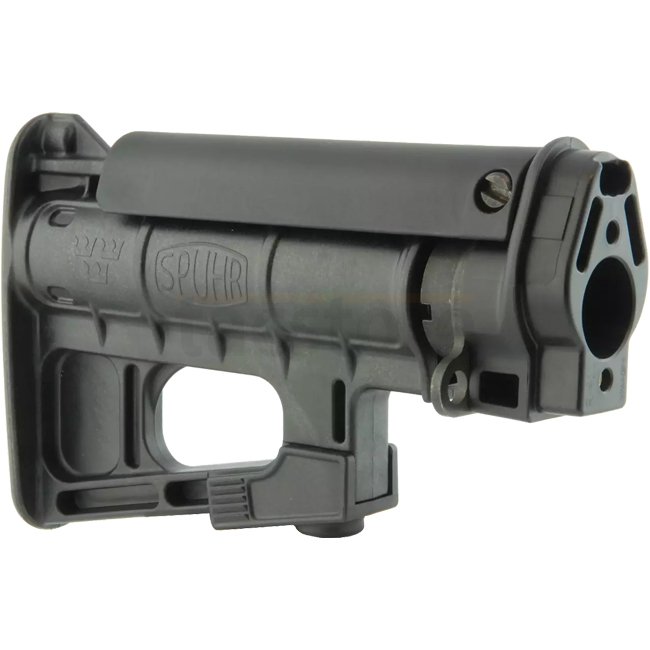 Der Spuhr R-410 ist ein in 6 Positionen verstellbarer Schaft, der die HK G3-Plattform modernisiert und Handhabung sowie Rückstoßkontrolle verbessert. Unter Verwendung der originalen Endkappe bietet dieser Schaft eine vollständige Längenverstellung und verfügt über eine nicht mitbewegende Wangenauflage, die das Auge des Schützen mit optischen Visieren ausrichtet.