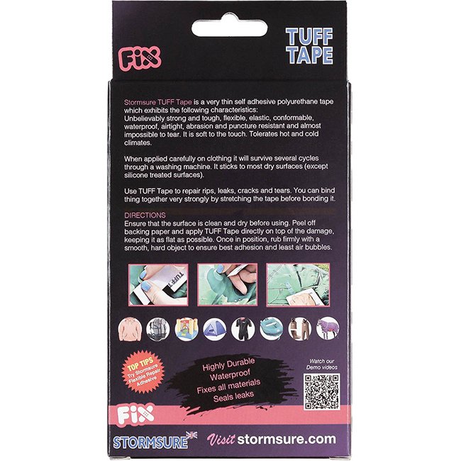 Stormsure TUFF Tape - 50 x 7,5 cm Klebeband für schnelle Reparaturen an Outdoor-Bekleidung, Zelten, Taschen. Haftet auf verschiedenen Materialien. Den beschädigten Bereich reinigen, das Band fest andrücken.