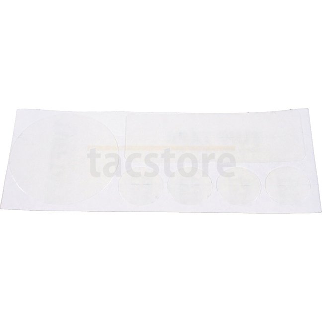 Patchset zur Schnellreparatur von z.B. Outdoorkleidung, Zelten, Taschen bestehend aus: 4 kleine runde Patches ca. 2 cm 1 grosser runder Patch ca. 5 cm 1 länglicher Patch ca. 8,3 x 2,8 cm haftet auf fast allen Materialien kaputte Stelle säubern und Patch fest aufdrücken