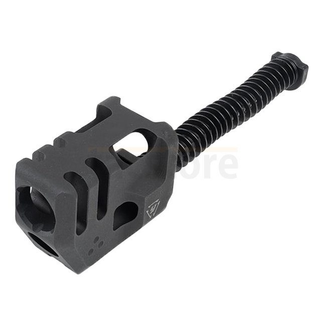 • Counter Recoil Design: Wenn sich der Schlitten zurückbewegt, bewegt sich der Kompensator nach vorne, um den gefühlten Rückstoss zu reduzieren