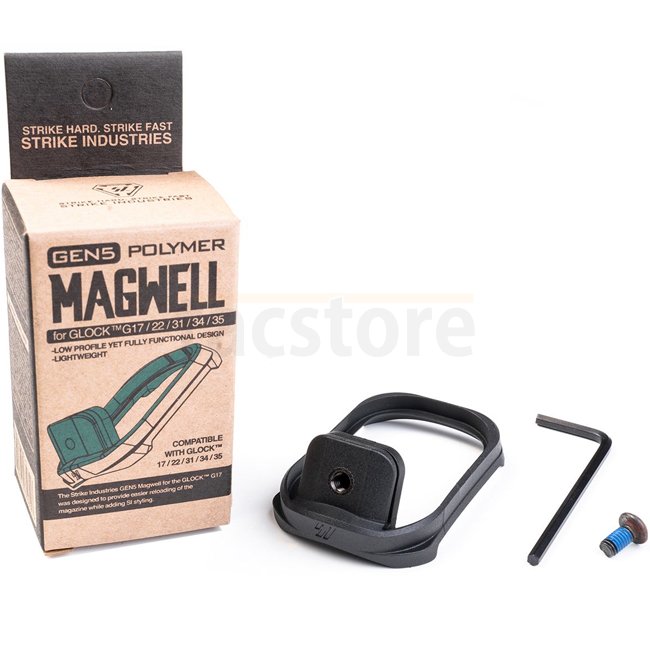 Erhalten Sie einen festen Sitz mit dem Strike Industries GEN5 Magwell Glock G5 17/22/31/34/35/45. Merkmale verbesserte Trichtergeometrie für einfache Nachladungen. Langlebige Polymerkonstruktion mit Kompatibilität für das Strike EMP System in Form und Fun