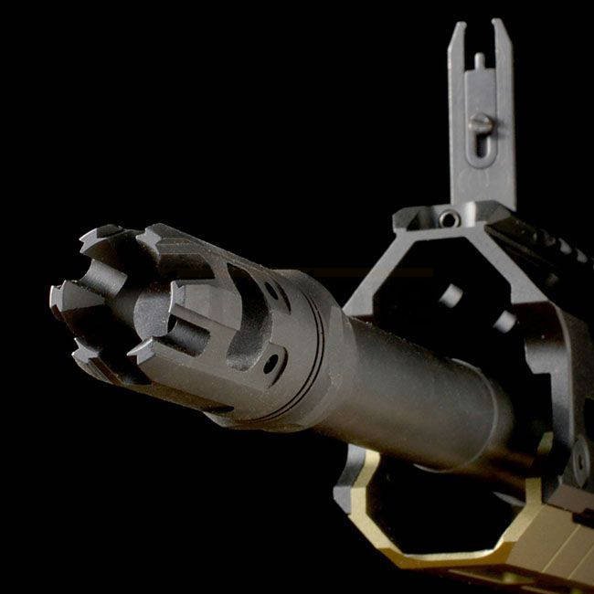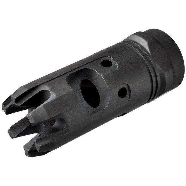 Verbessern Sie Ihr Schießerlebnis mit dem Strike Industries Mini King Comp 9mm. Dieses kompakte Ein-Kammer-Design verfügt über Abstandszinken und eine präzise gefertigte Konstruktion aus 416 Edelstahl. Schwarz nitriert für Haltbarkeit, ist es für den Rück
