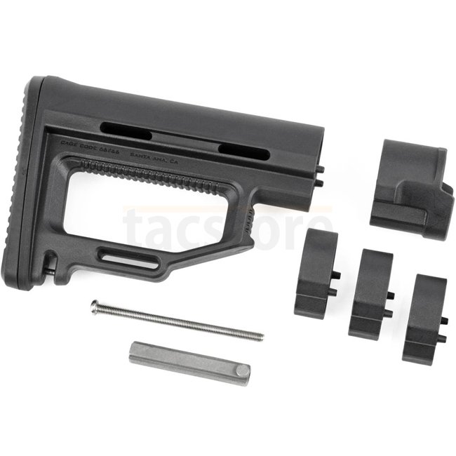 Der Strike Industries Modular Fixed Stock verwendet eine Standard Carbine Receiver Extentions und wird mithilfe des mitgelieferten Shim-Sets angepasst, um die Anschlagslänge zu ändern. 3x Abstandshalter (je 19mm) im Lieferumfang enthalten.