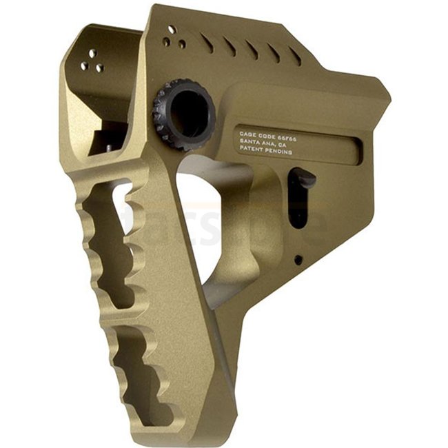 Verbessern Sie Ihre Schusswaffe mit dem Strike Industries Pit Stock in Dark Earth; gefertigt aus 6061 T6 Aluminium, bietet es eine Länge von 67mm und eine variable Schaftlänge von 25 bis 30,5cm in 3 Positionen. Mit nur 117g Gewicht ist dieser innovative S