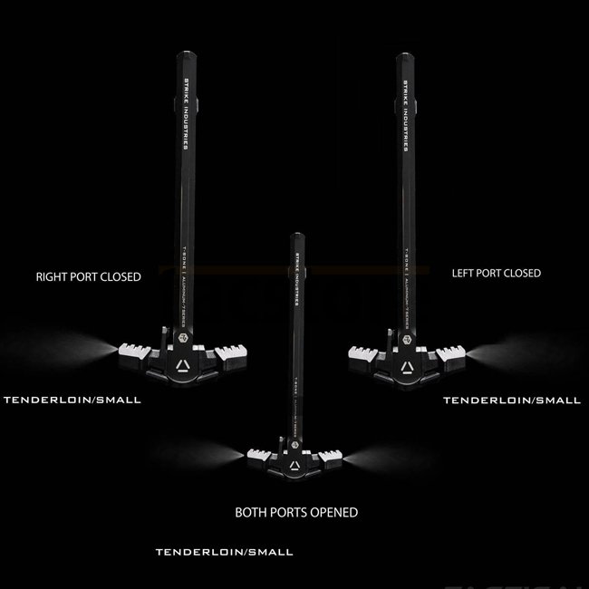 Diese austauschbaren T-Bone-Latches verfügen über das patentierte Gasumleitungssystem von Strike Industries, mit dem Sie den Gasaustritt nur nach links, nur nach rechts oder gleichmäßig auf beide Seiten umleiten können.