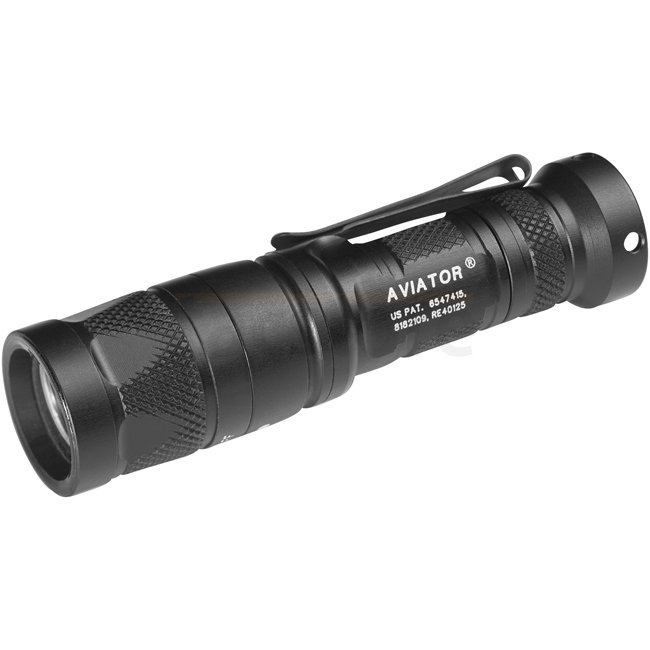 Reach For The Sky. Die SureFire Aviator Taschenlampe kombiniert eine primäre weiße LED und eine sekundäre farbige LED in einem versiegelten Kopf. Beide LEDs erzeugen mit der fortschrittlichen Total Internal Reflection (TIR) Linse einen praktischen Strahl mit außergewöhnlicher Reichweite und Umgebungslicht.