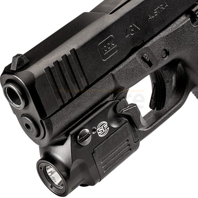 Kompakte SureFire XSC-A LED-Leuchte für Glock 43X & 48. Entwickelt für verdecktes Tragen. Bietet 350 Lumen, 0,45 Stunden Laufzeit und einfache Befestigung an Pistolen.