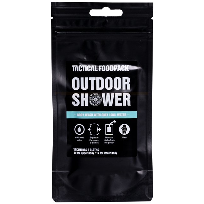 Die Outdoor shower ist eine innovative Waschlösung für den Outdoorbereich. Wenn Sie sich in einer Situation befinden, in der es an Wasser oder einer Waschgelegenheit mangelt, ist es eine perfekte und einfache Lösung. Sie ist hautfreundlich, nicht sensibilisierend und frei von Konservierungsstoffen. Das Produkt enthält Panthenol, so dass es auch für die Reinigung kleinerer Hautabschürfungen oder -schnitte geeignet ist. Alles, was Sie benötigen, sind 10 ml Wasser. Geben Sie einfach Wasser in den Beutel, drücken Sie ein paar Mal darauf und beginnen Sie mit dem waschen. In der Packung finden Sie 2 Tücher, eines für den Oberkörper und eines für den Unterkörper. Sie brauchen nicht ausgespült zu werden. Ihre Haut wird sauber und befeuchtet sein.