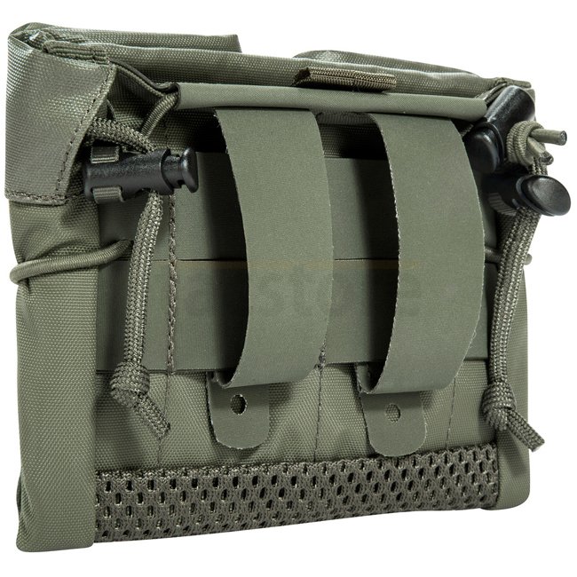 Klein zusammenfaltbarer Dump-Pouch für leere Magazine oder andere Utensilien. Mit Netzboden für schnellen Wasserablauf. Innen befindet sich eine Befestigungsmöglichkeit für eine M4-Magazintasche oder zwei Pistolenmagazine. Die Bedienung ist auch bei zusammengefalteter Tasche möglich.