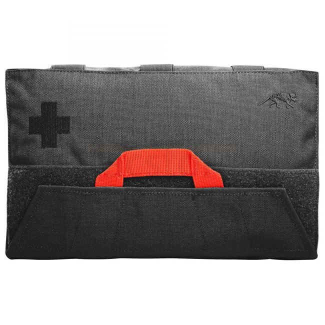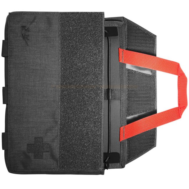 First Aid Kit mit Schnellzugriff-System. Das Panel mit individuell zu bestückenden Schlaufen kann mit einem Griff herausgezogen werden.