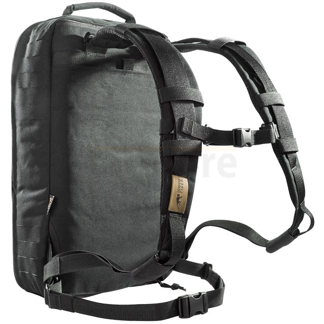 Größerer Medic-Rucksack mit intelligenter, übersichtlicher Innenaufteilung. Der Medic Assault Pack MK II L bietet nun die dritte Größe des bewährten Medic-Rucksacks von Tasmanian Tiger. Der Rucksack ist ca. 4 cm (ein Molle-Streifen) tiefer als die beiden kleineren Modelle. Das MOLLE-System auf der Front und an den Seiten ist in Laser Cut-Technik ausgeführt. Am Boden befindet sich eine Fixiermöglichkeit für eine Rettungsdecke. Die leichten, gepolsterten Schulterträger können abgenommen und in einer Tasche mit Klettverschluss am Rücken verstaut werden, eine Adaption des Rucksacks auf Plattenträger und Westen durch entsprechendes, mitgeliefertes Gurtband ist möglich. Verstaubare Tragegriffe dienen dem Schnelltransport im Notfall.