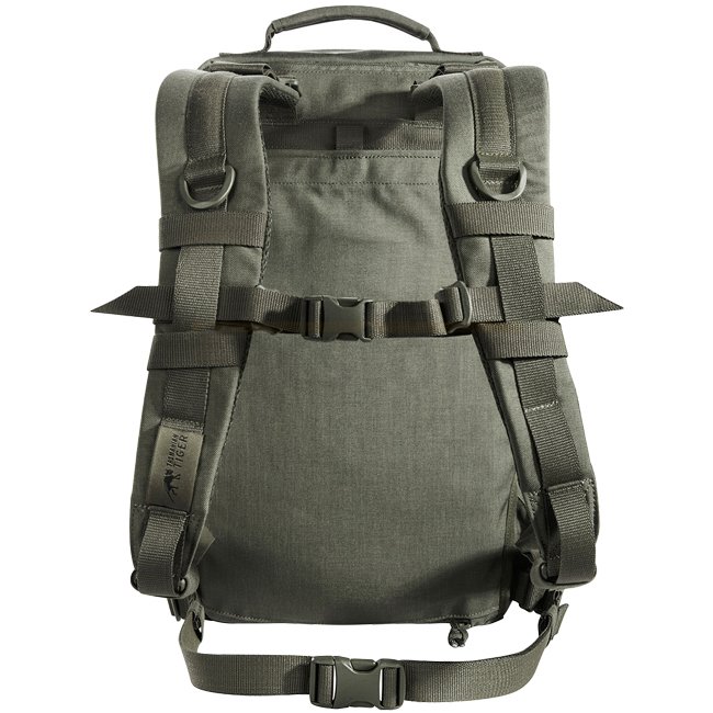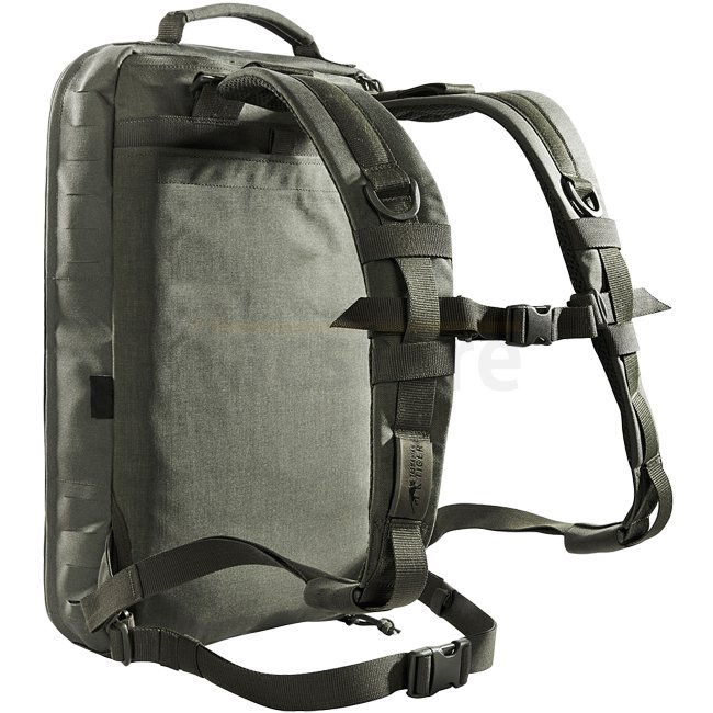 Flacher Medic-Rucksack mit intelligenter, übersichtlicher Innenaufteilung. Das MOLLE-System auf der Front und an den Seiten ist in Laser Cut-Technik ausgeführt. Die leichten, gepolsterten Schulterträger können abgenommen und in einer Tasche mit Klettverschluss am Rücken verstaut werden, eine Adaption des Rucksacks auf Plattenträger und Westen durch entsprechendes, mitgeliefertes Gurtband ist möglich. Verstaubare Tragegriffe dienen dem Schnelltransport im Notfall. Gefertigt aus CORDURA® und Material mit IRR-Ausrüstung. Sowohl die europäischen CORDURA®-Materialien als auch Gurtbänder, Klettverschlüsse und Schnallen erfüllen die hohen Bundeswehr-Standards TL 8305-0278 bzw. TL 8305-0281 bezüglich der IRR-Tarnwirkung (IRR 650 – 1250nm / 10 – 42%)