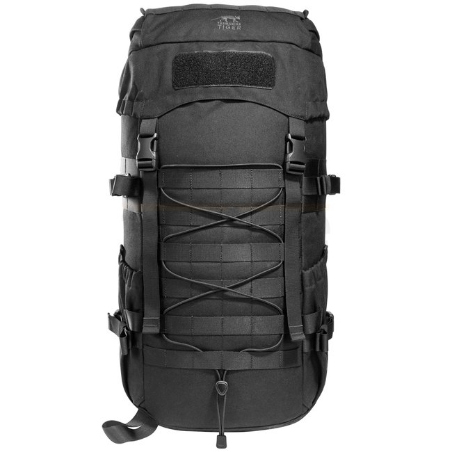 Tasmanian Tiger Mil OPS Pack 30 - Schwarz ist ein kleiner, robuster Mission-Rucksack mit umfangreichen Ausstattungen. Er enthält ein MOLLE-System, Schnürsystem, Kompressionsriemen, Seitentaschen, Vorbereitung für ein Trinksystem und ein Deckelfach mit Rei