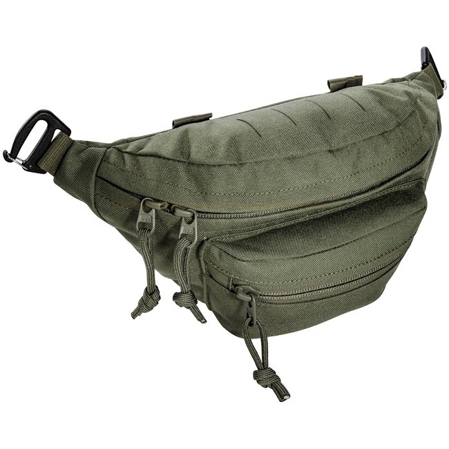Universell einsetzbare Hüfttasche. Die TT Modular Hip Bag besitzt ein mit MOLLE-Klett versehenes Hauptfach, eine kleine Fronttasche und ein zusätzliches Reißverschlussfach auf der Rückseite. Auf dem Deckel befindet sich eine MOLLE-Leiste in Laser Cut-Ausführung. Der Gürtel ist abnehmbar, die Tasche kann mit vorbereiteten Haken zum Beispiel an einem Ausrüstungsgürtel eingehängt werden.