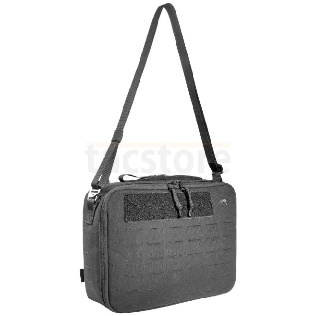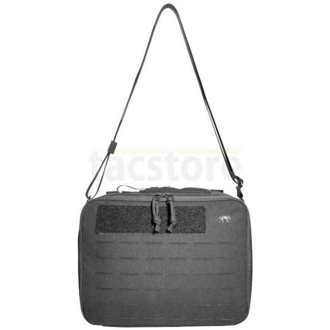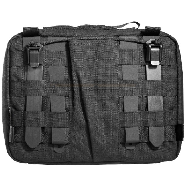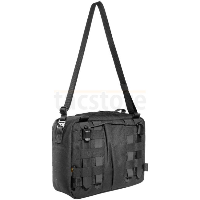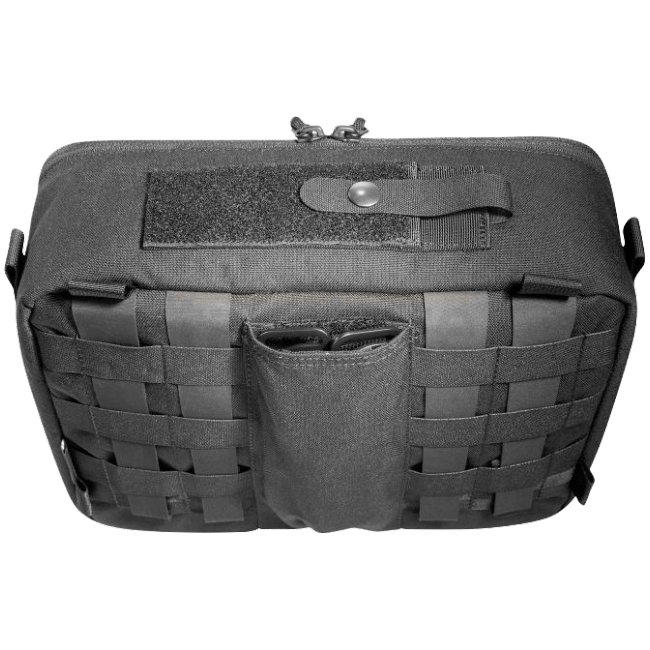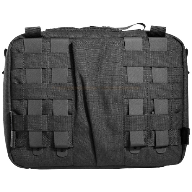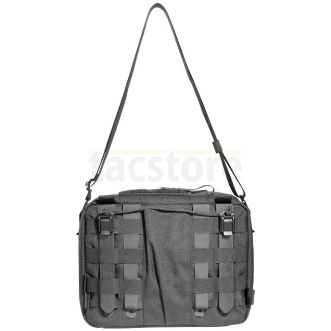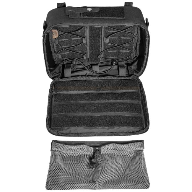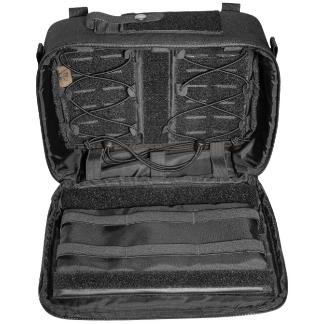 Gepolsterte Medic-Tasche mit verschiedenen Trageoptionen. Die TT Modular Support Bag lässt sich nach vorne öffnen und bietet auf der Innenseite MOLLE-Klett und Bungee-Cord zur individuellen Bestückung. Auf der Front und an den Seiten befindet sich Lasercut-MOLLE. Die Tasche ist mit einem abnehmbaren, verstaubaren Schultertragegurt ausgestattet und auf der Rückseite zusätzlich mit MOLLE-Sticks als Schnelllösesystem versehen, mit dem sie sich auf Plattenträgern oder Rucksäcken befestigen lässt. Auch eine Befestigung auf dem TT Modular Front Seat Panel (Art. 7548) ist möglich.