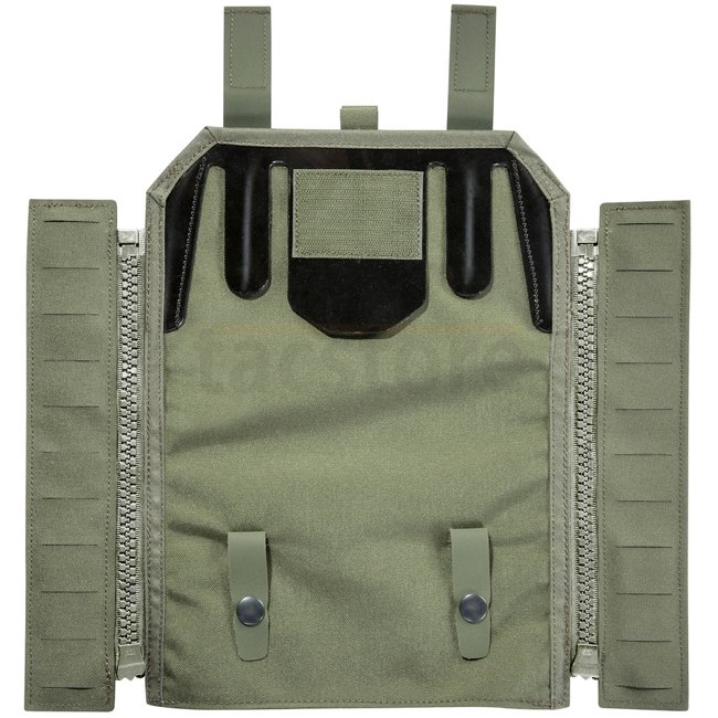 • Befestigung am Plattenträger mittels seitlicher Reißverschlüsse (Typ Vislon, Stärke #10, Länge 24 cm)