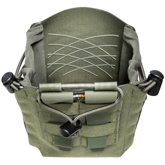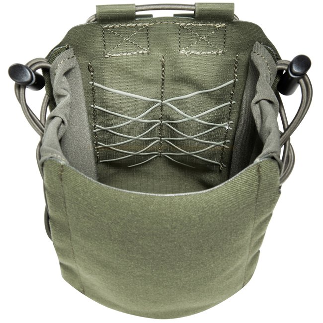 Komprimierbare Außentasche für Rucksäcke. Die Einstecktasche Tasmanian Tiger Multipurpose Side Pouch eignet sich ideal für eine 1-Liter-Nalgene-Flasche oder zum Transport eines Kamera-Stativs. Sie kann mit einem Gummizug komprimiert werden und lässt sich mit MOLLE als Seitentasche an Rucksäcken befestigen.