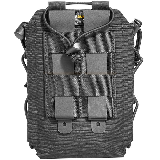 Komprimierbare Außentasche für Rucksäcke. Die Einstecktasche Tasmanian Tiger Multipurpose Side Pouch eignet sich ideal für eine 1-Liter-Nalgene-Flasche oder zum Transport eines Kamera-Stativs. Sie kann mit einem Gummizug komprimiert werden und lässt sich mit MOLLE als Seitentasche an Rucksäcken befestigen.