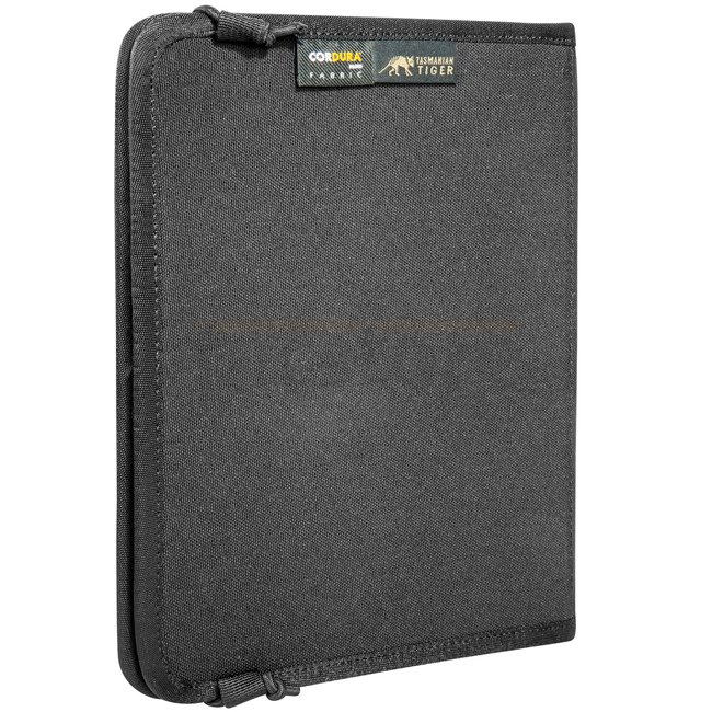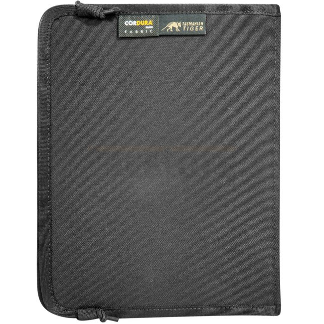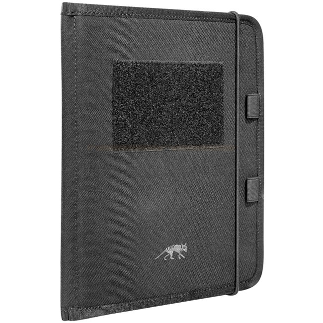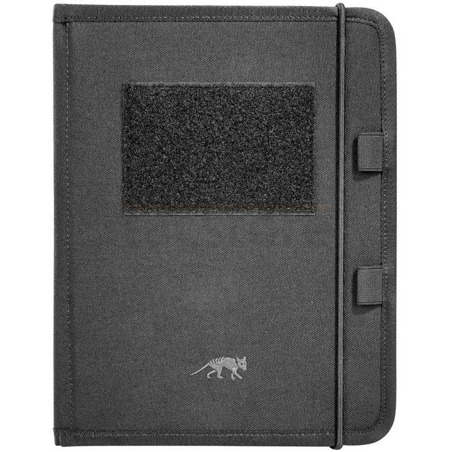 Stabile Hülle für A5-Notizbücher. Mit Organizer und Klettfläche auf der Außenseite und Bungee-Cord zum Verschließen.