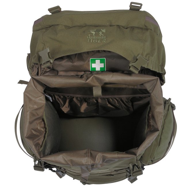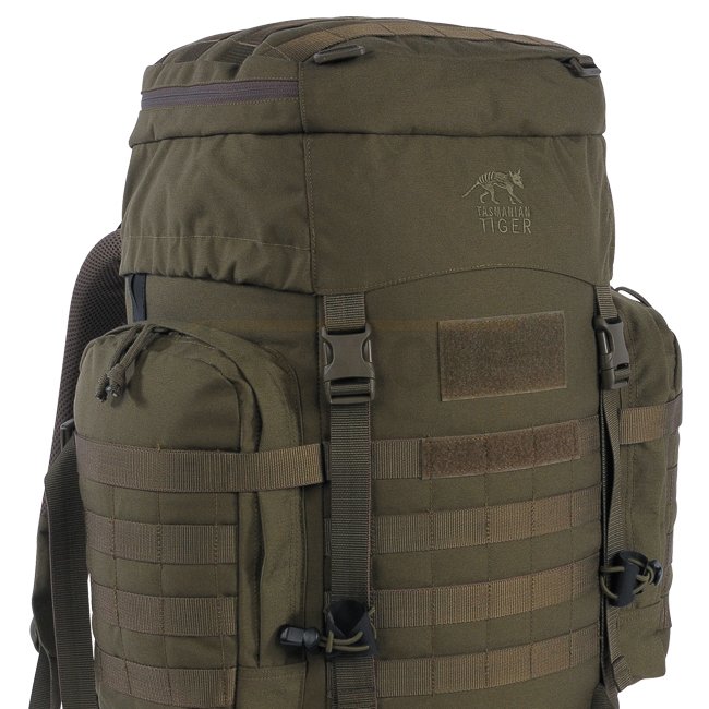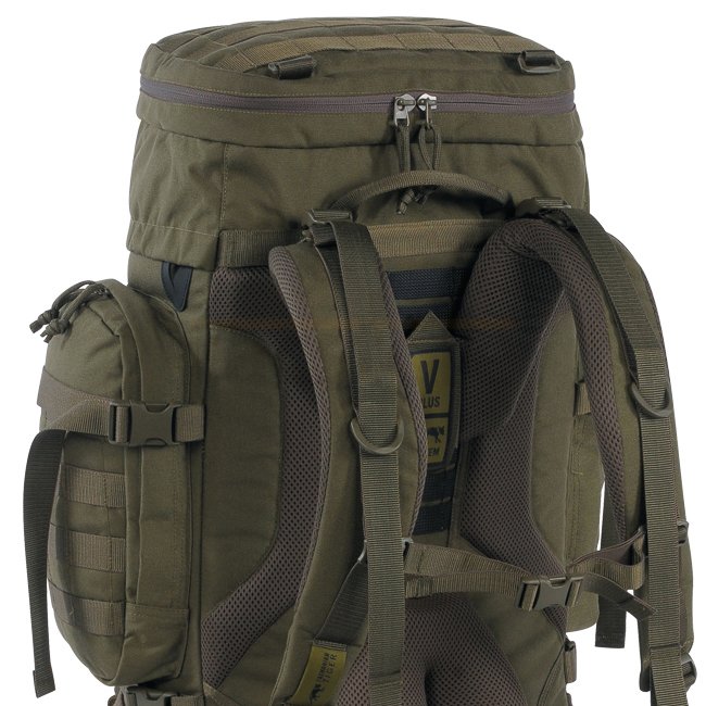 Klassischer Militärrucksack mit V2 Plus Tragesystem, vielseitig einsetzbar für verschiedene Outdoor-Aktivitäten. Zu den Merkmalen gehören das V2 Plus Tragesystem, Fixierung für Wanderstöcke oder Eispickel, verstellbarer Brustgurt, abnehmbarer gepolsterter