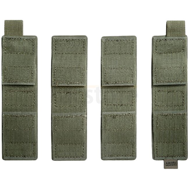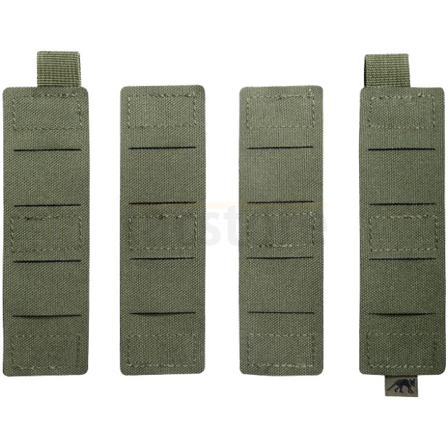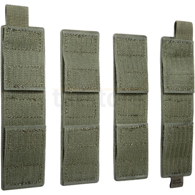 Tasmanian Tiger SGL MOLLE Adapter Set VL - Olive: Befestigen Sie Taschen auf Klettflächen oder verwenden Sie sie mit MOLLE-Streifen. Set von 4, CORDURA 700D Material, Maße 13x4cm.