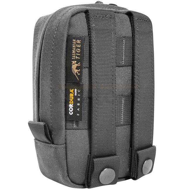 Zubehörtasche vertikal mit weit zu öffnendem Reißverschluss, Klettstreifen für Namensschild und MOLLE-System.