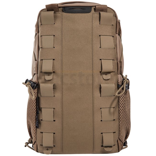 Die TT Tac Pouch 11 mit 7 Liter Volumen bietet durch den Mittelreißverschluss einen schnellen Zugriff. Die funktionale Innenaufteilung des Hauptfachs mit MOLLE-Klett und Bungee-Cord kann zum Beispiel für medizinische Ausrüstung genutzt werden. Die Tasche verfügt zudem über seitliche Einstecktaschen aus Netzgewebe, z.B. für Magazine, und MOLLE in Lasercut-Ausführung sowie eine Flauschklettfläche auf der Front. Das gesamte System ist mit Bungee-Cord flach komprimierbar. Die Tasche ist zudem mit einer Trinksystemvorbereitung und dem entsprechenden Ausgang ausgestattet.