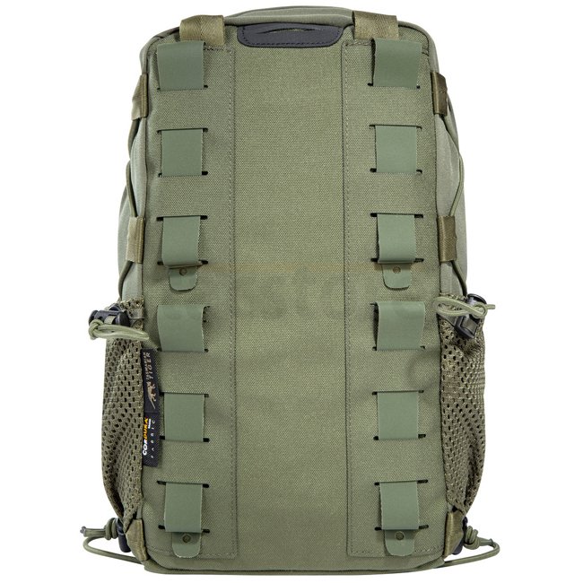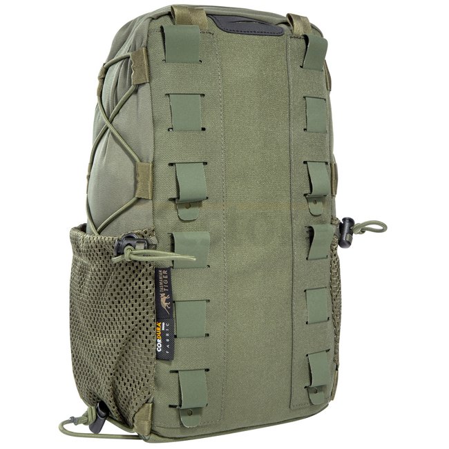 Die TT Tac Pouch 11 mit 7 Liter Volumen bietet durch den Mittelreißverschluss einen schnellen Zugriff. Die funktionale Innenaufteilung des Hauptfachs mit MOLLE-Klett und Bungee-Cord kann zum Beispiel für medizinische Ausrüstung genutzt werden. Die Tasche verfügt zudem über seitliche Einstecktaschen aus Netzgewebe, z.B. für Magazine, und MOLLE in Lasercut-Ausführung sowie eine Flauschklettfläche auf der Front. Das gesamte System ist mit Bungee-Cord flach komprimierbar. Die Tasche ist zudem mit einer Trinksystemvorbereitung und dem entsprechenden Ausgang ausgestattet.