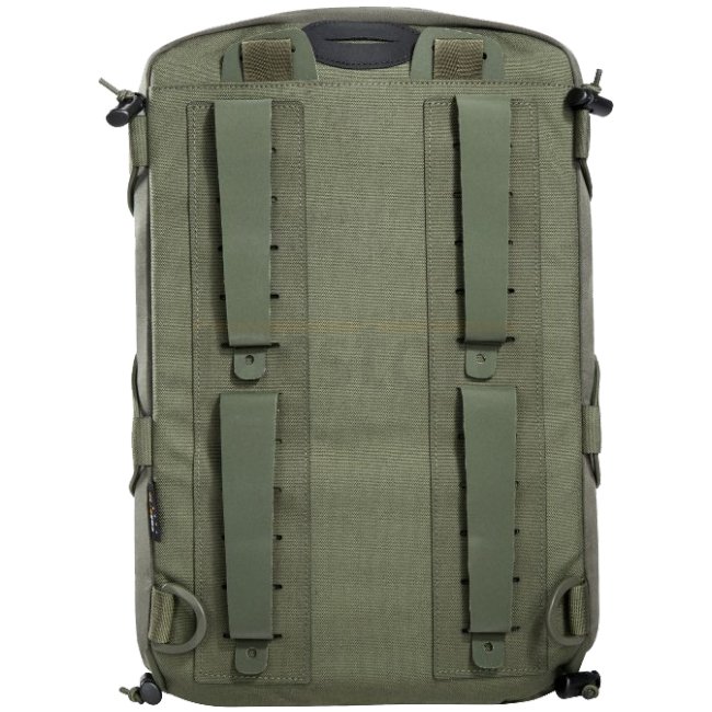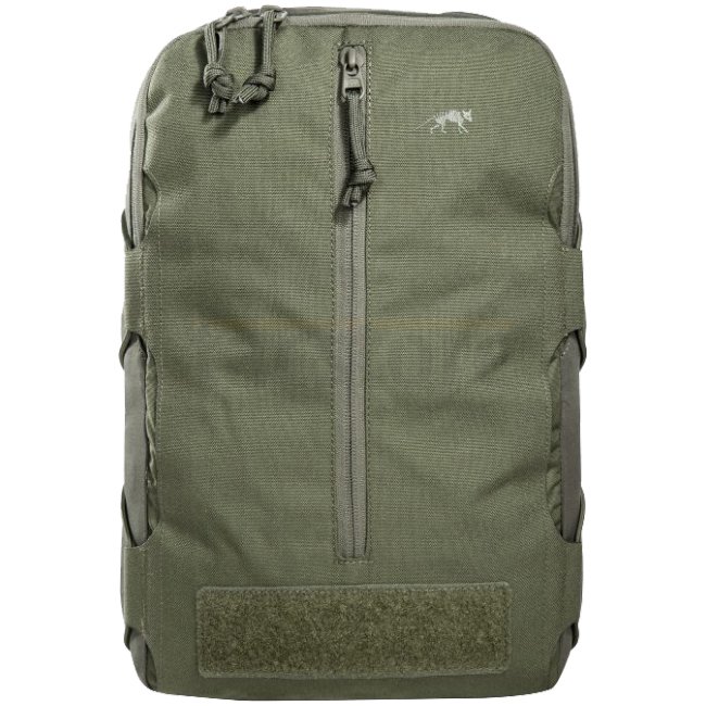 Zubehörtasche mit MOLLE-Reverse-System. Innen befindet sich MOLLE-Klett sowie eine Netztasche. Die Tasche ist zudem mit einer Trinksystemvorbereitung und dem entsprechenden Ausgang ausgestattet, und sie verfügt über eine Fronttasche mit vertikalem Reißverschluss. Die Seitenwände sind elastisch. Das gesamte System ist mit Bungee-Cord flach komprimierbar.