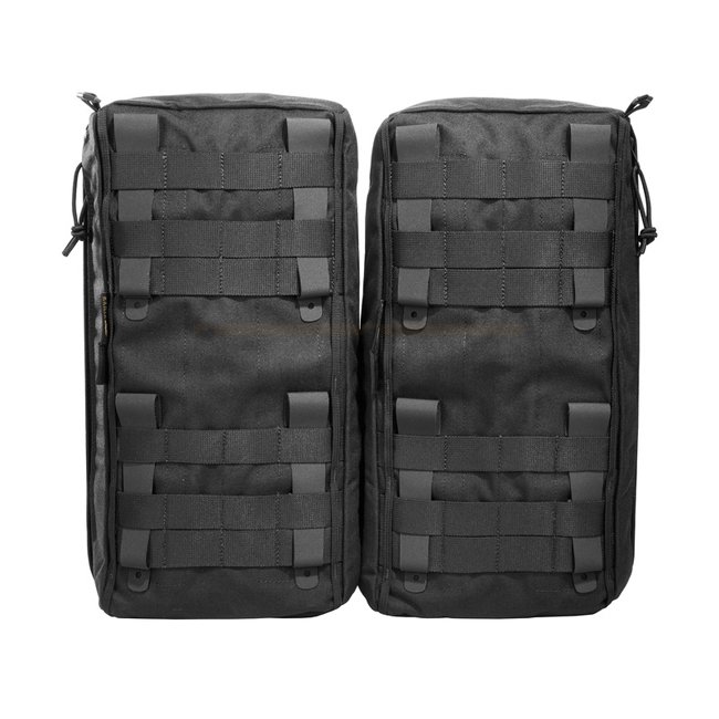 Einfaches Balgtaschen-Set zur Nutzung am Rucksack. Mit je 12 Liter Volumen und Zugriff von rechts oder links.